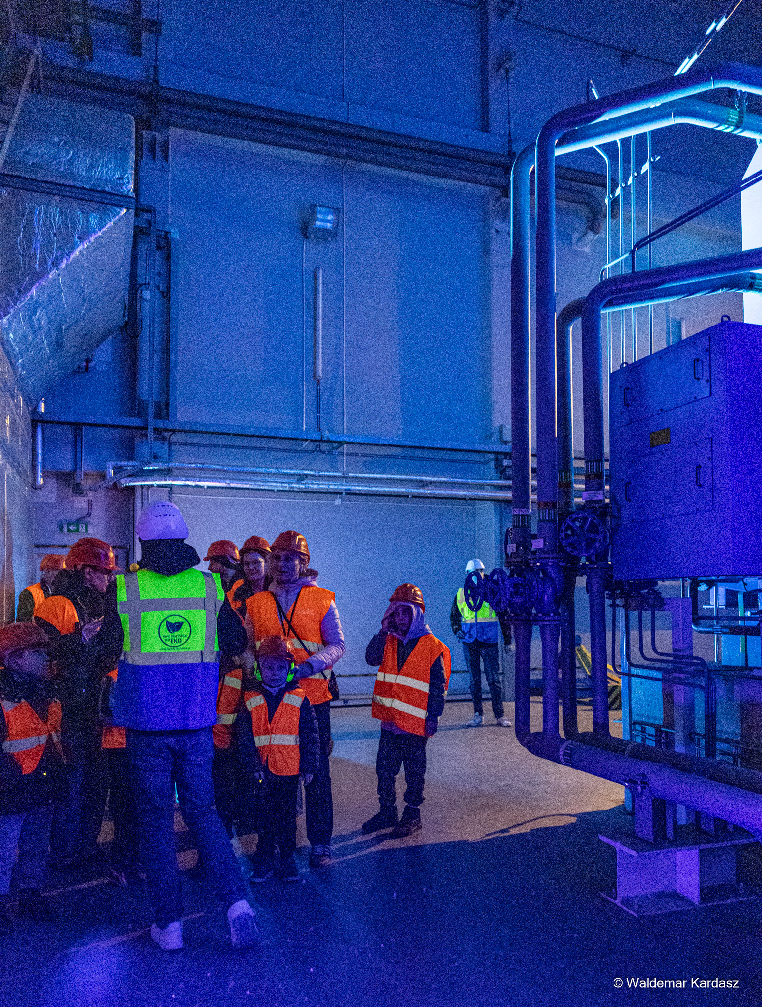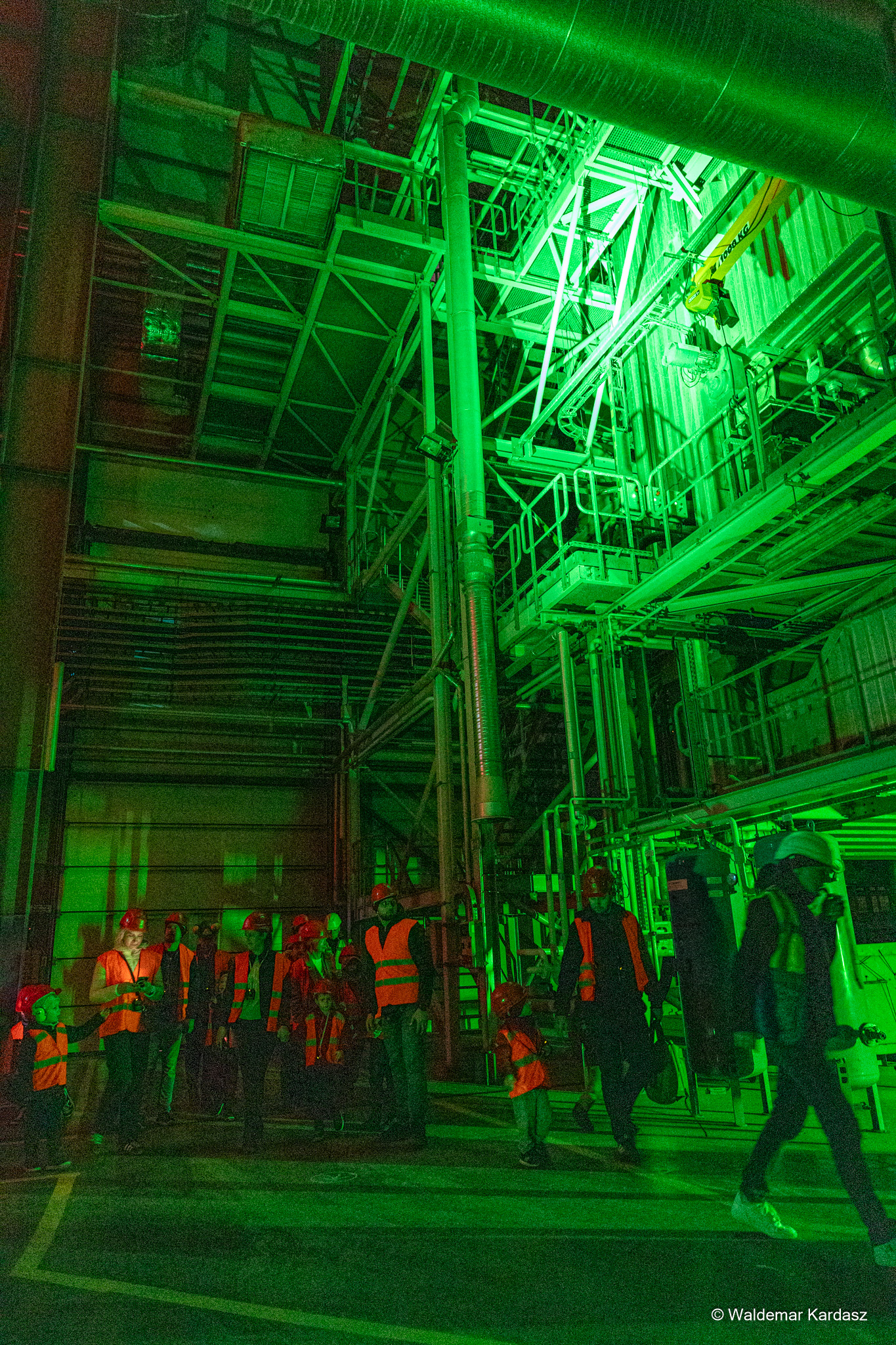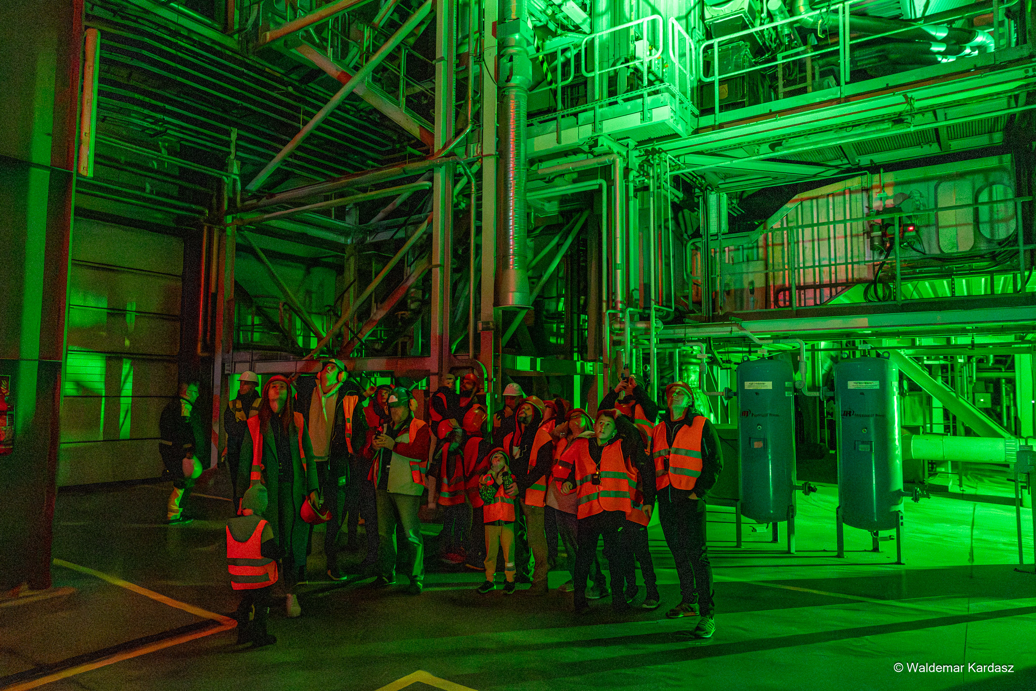 W sobotni woieczór 8 listopada, uczestnicy mogli obejrzeć ZUOK Białystok w nie codziennej iluminacji. Po zmroku spalarnia zyskała wyjątkowy, industrialny klimat dzięki kolorowym reflektorom i aranżacji światło–dźwięk, które podkreśliły charakter przestrzeni. Goście obejrzeli podświetlone elementy instalacji, w tym kocioł, system oczyszczania spalin, turbinę, generator oraz skraplacz. Duże wrażenie, jak zawsze, zrobił widok z dyspozytorni na bunkier, gdzie odpady czekają na podanie do spalania.